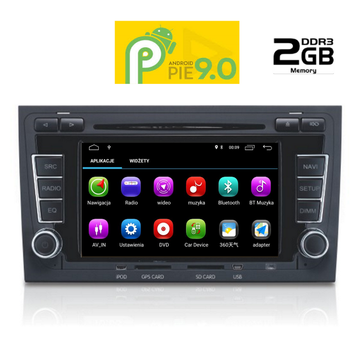 MULTIMEDIA OEM AUDI A4 2002-2008, ANDROID 9 PIE , 7inch Full HD Touchscreen , Resolution 1024x600pixels, 450 WATT, 2GB RAM