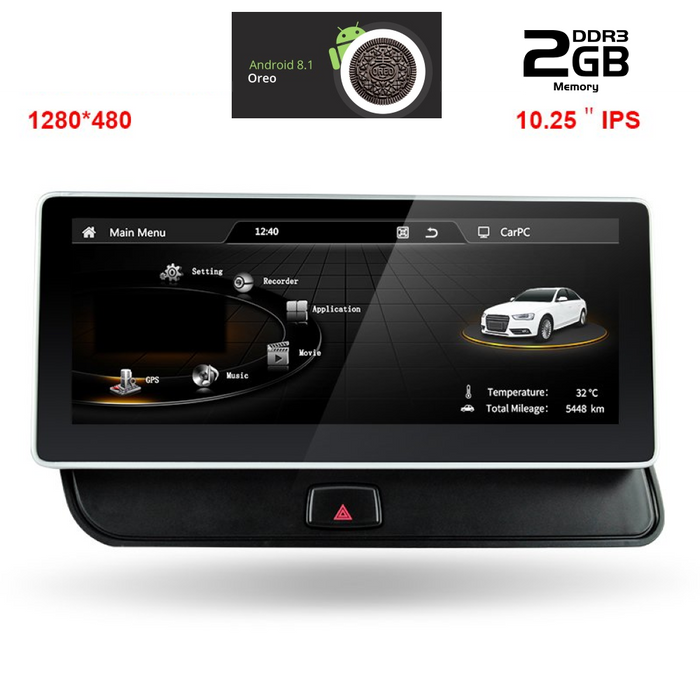 MULTIMEDIA OEM AUDI Q5 2008> 10.25inch – Resolution 1280x480pixels , ANDROID 8.1 OREO , 2GB RAM – 32GB NAND FLASH